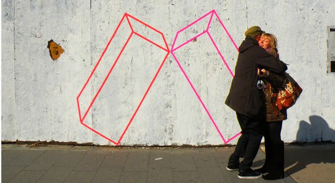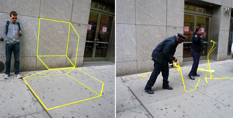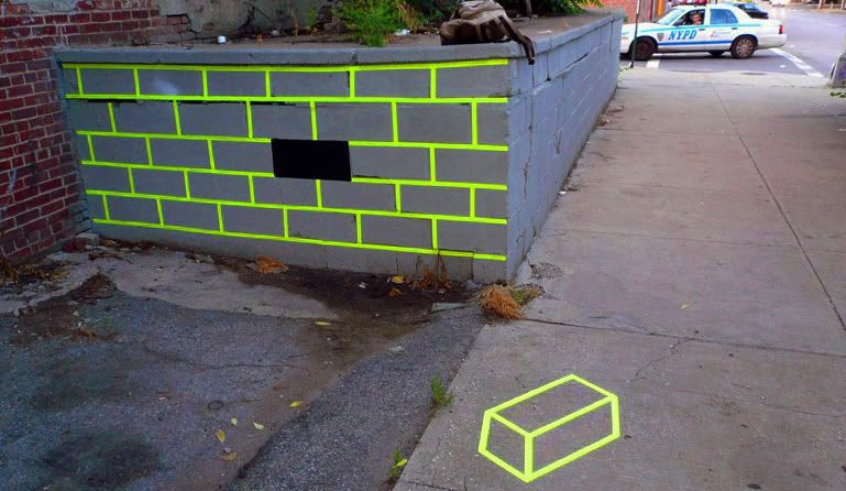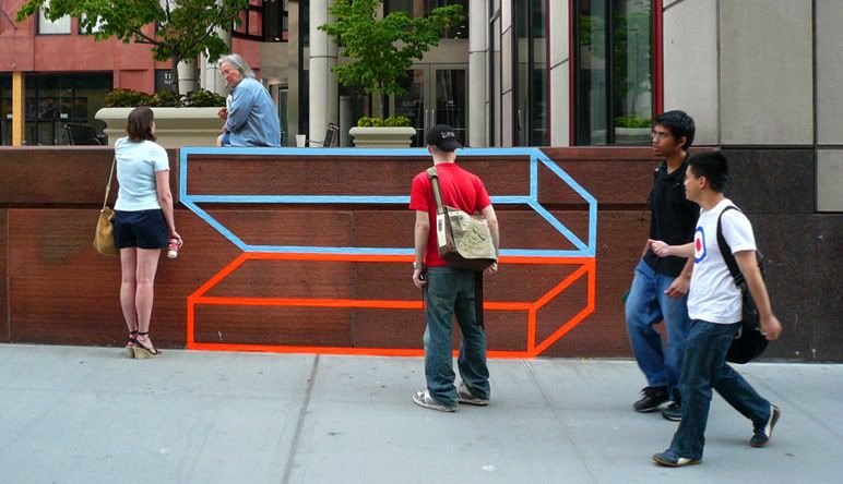 His street art mainly consists of isometric rectangles and squares and he definitely has made a name for himself, even doing street collabos with Poster Boy. There have also been exhibitions in art museums showcasing his 'tape art'.
