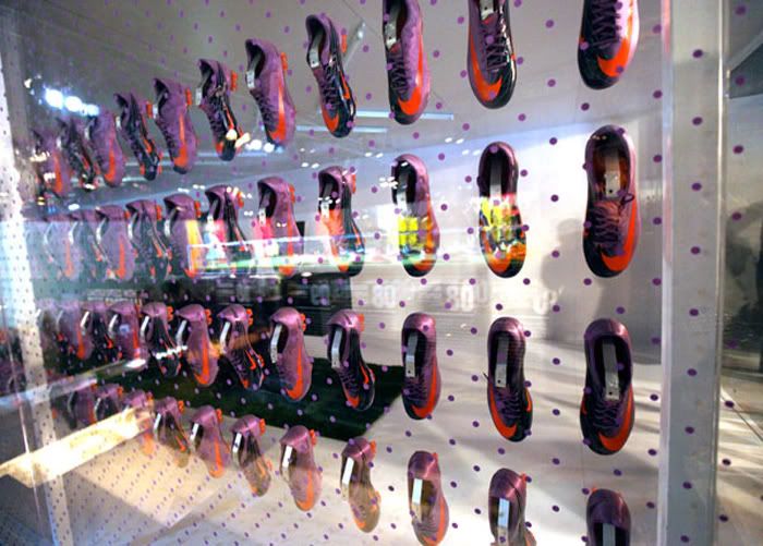 + In London, Nike introduced their new Nike Mercurial Vapor SuperFly II cleats for football players. It was presented at the Battersea Power Station where fluorescent purple lights and projectors enveloped the building. In addition to the new footwear they released the new Nike Football+ iphone app (with twitter/facebook integrations). Even Cristiano Ronaldo was their to answer questions.