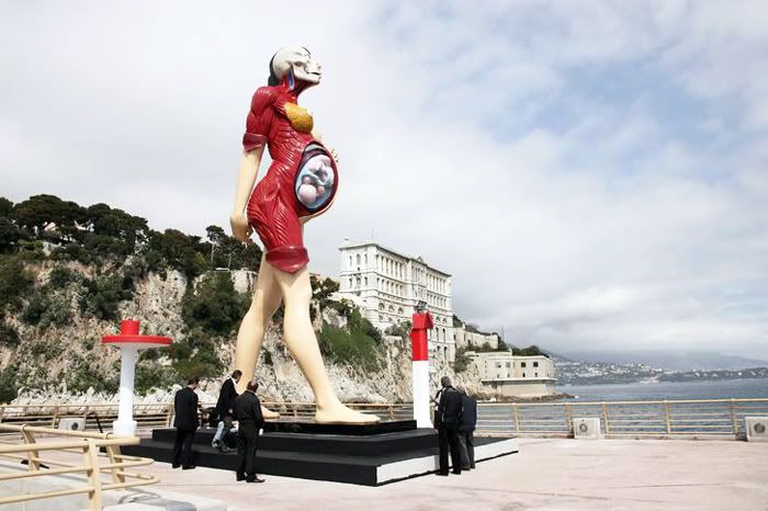 + Damien Hirst's most recent exhibit is now taking place at the Oceanographic Museum of Monaco (the building above). There are some interesting new and old pieces in the exhibit including a giant pregnant women looking over the sea.