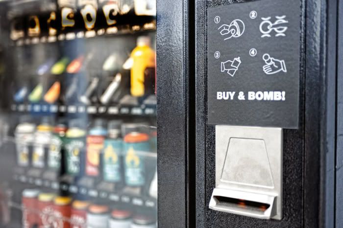 + the graffomat is a new state of the art graffiti supply vending machine. it supplies everything from markers, caps, gloves, and ski masks. i bet this already exists in japan and i'm glad someones bringing it overseas.