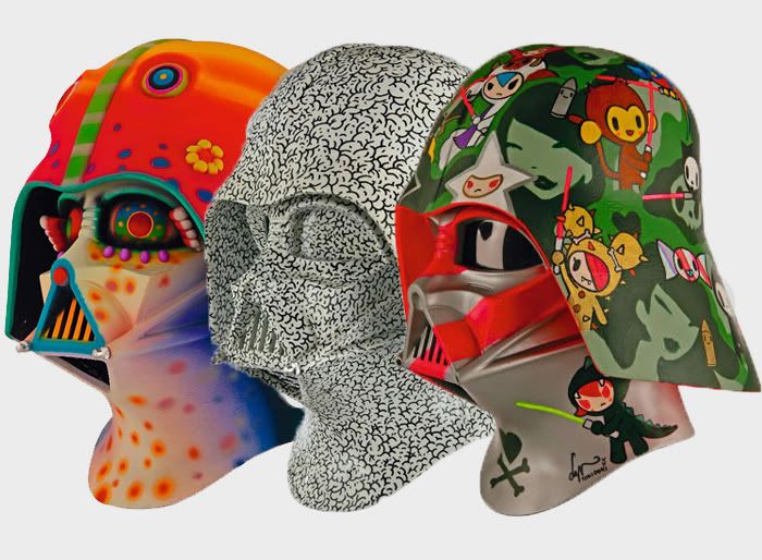 + the darth vader project is curated and produced by dov kelemer and sarah jo marks of dke toys, it consists of 100 darth vader helmets re-imagined by the best underground artists and designers. it began four years ago and includes artists such as jermaine rogers, the pizz, dalek, paul frank, ron english, jeff soto, frank kozik, tokidoki, secret base, joe ledbetter, alex pardee, suckadelic, mister cartoon, and marc ecko. there will be a ten day auction in los angeles and the auction will begin on july 10, 2010 in philadelphia.