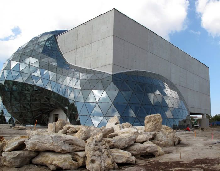 + since florida is prone to powerful hurricanes, the art is located above the flood plane and housed within cast-in-place reinforced 18” thick concrete walls. the museum can protect the prized collection from up to a category 5 hurricane storm surge and 165mph winds. no glass panel, structural node or strut is precisely the same, and all are identified by bar code to facilitate fabrication, shipping and assembly. “this has permitted us to create a family of shapes which while structurally robust more closely resembles the flow of liquids in nature,” according to the architects. the architects are hok and the beck group. the budget was $30 million with a floor area of 66,000 square feet and three floors. it opens january 1, 2011.