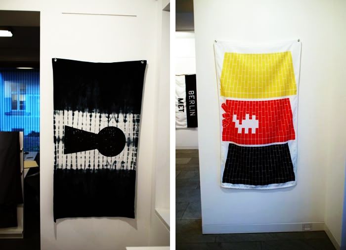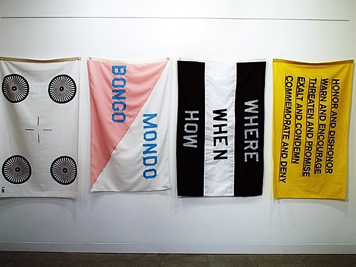 + since his childhood leon has been fascinated by flags. the united nations, olympics, world’s fair and other idealized visions of world community has always inspired his artwork and design. vexhall is composed of pieces that draw literally from flag design, mixed with leon‘s own design sensibility and personal history. the show is at the pool gallery in berlin, germany from september 3 through october 1, 2010.