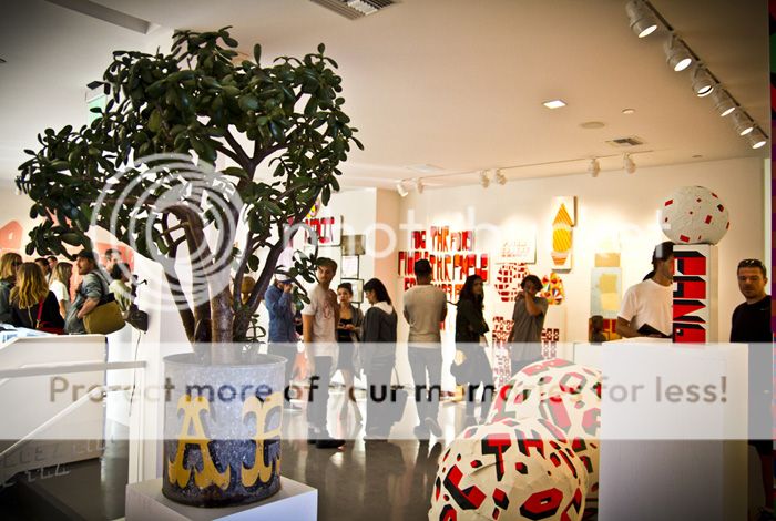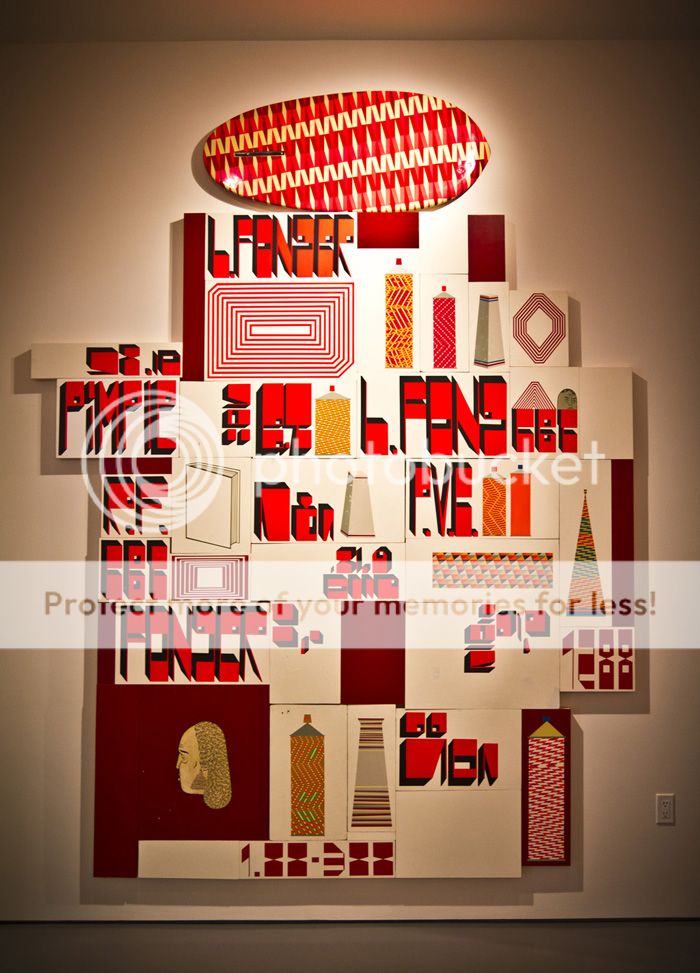 After years of following SF Bay Area native artist Barry McGee, I was able to see his artistic skills in person. While planning my visit to Los Angeles I heard he had a show at the PRISM Gallery till June 30, 2012 so marked my calendar to visit. On my visit I was definitely overwhelmed with the copious amount of McGee's works. The whole gallery, upstairs and downstairs, filled with numerous drawings, paintings, prints, sculptures and photographs of his familiar characters, geometric compositions, color fields, and visual language. One of my new favorite pieces in this exhibit are the collection of surfboards he painted.