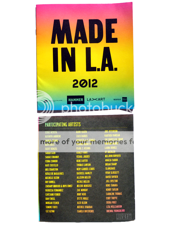 After seeing countless ads around the LAX Airport, Downtown LA, and of course UCLA campus about this exhibit, I decided to stop by. Made in L.A. 2012 is an biennial exhibition featuring works by 60 artists around the L.A. region. It emphasizes on emerging and under-recognized artists, and debuts new installations, videos, films, sculptures, performances, and paintings. The exhibit runs till September 2, 2012. The museum is worth checking out especially if you're in the UCLA area.